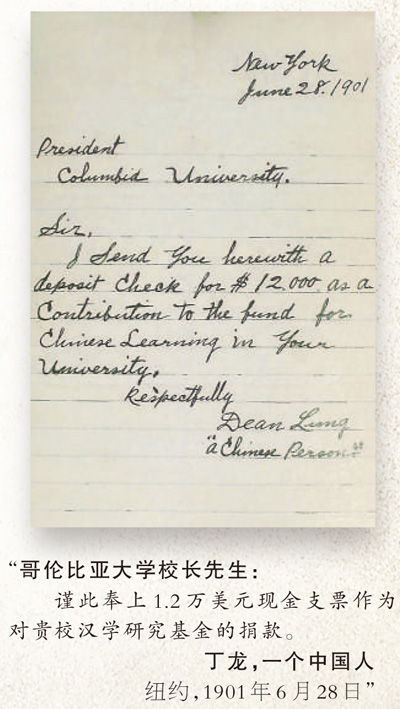 1901年,一位名不见经传的普通华工,以“丁龙,一个中国人”的落款向位于美国纽约的哥伦比亚大学(以下简称“哥大”)捐赠1.2万美元。丁龙的捐款推动创设了美国最早的汉学教席之一,意在聘请精通汉学的杰出学者到哥大开展研究教学,传播中国文化。丁龙汉学教席的设立,也成为哥大东亚语言与文化系(以下简称“东亚系”)的发端。