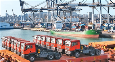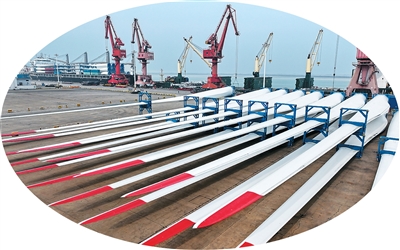 江苏省连云港港东方港务分公司码头,摆放着即将发往国外的国产风电设备。