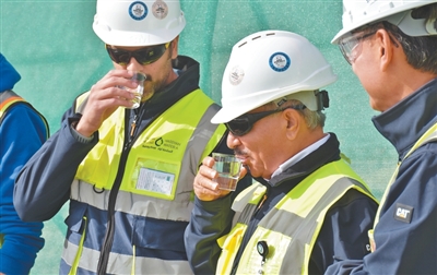 阿方代表现场品尝合格水。 |