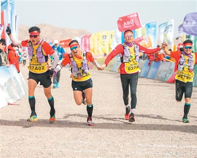 图为“玄奘之路”戈壁挑战赛(中国)121公里团队赛现场。该赛事强调“一起出发,一起到达”的团队精神。 |