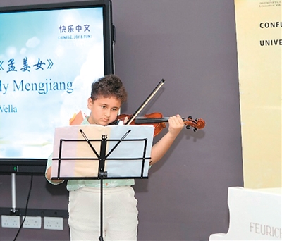 获得2025年“汉语桥”世界小学生中文秀马耳他赛区冠军的是11岁的伯纳德·维拉。赛场上,他用流利的中文讲述了自己与中文结缘的故事,用小提琴演奏《孟姜女》,琴弦上流淌出的旋律如涓涓细流,打动了在场的每一个人。当得知孩子获得冠军时,伯纳德的母亲热泪盈眶。“我希望未来能到中国学习机械专业。”这是伯纳德的梦想。