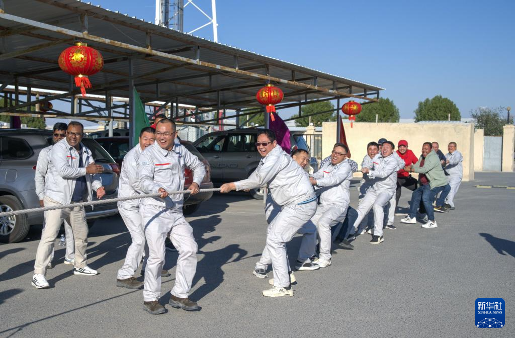 2024年2月10日,正值中国传统节日春节,负责建设科威特阿卜杜拉新城项目的中国能建葛洲坝集团的中外职工在科威特杰赫拉省举行拔河比赛。